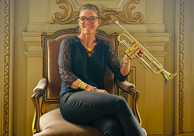 Aurore Prieur joue sur une trompette Sib Antoine Courtois Confluence, modèle Médium vernie.